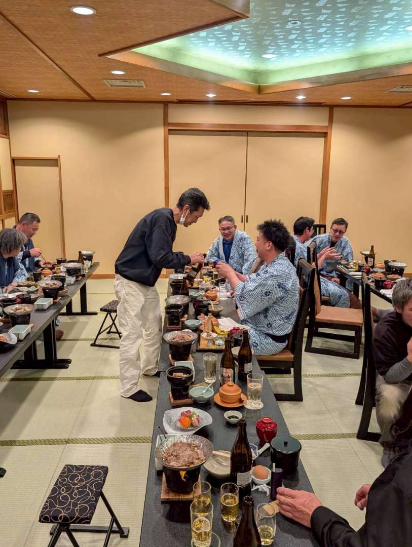 夜は協力業者様と旅館で合流。温泉と食事を楽しみました。