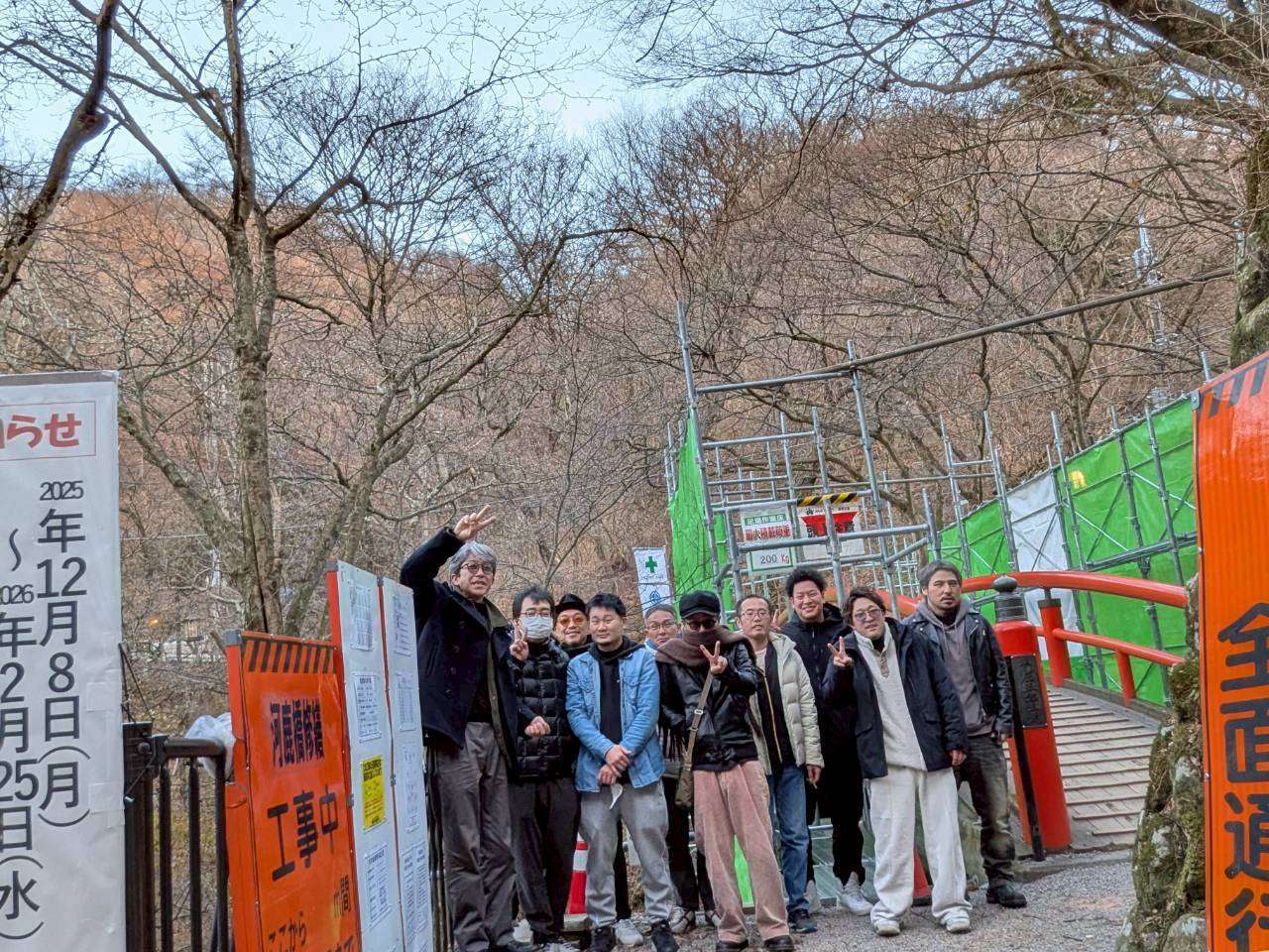 ジブリ作品「千と千尋の神隠し」に登場する油屋入口の赤い吊橋。そのモデルになったという「河鹿橋」へ立ち寄りましたが残念ながら工事中😭。
